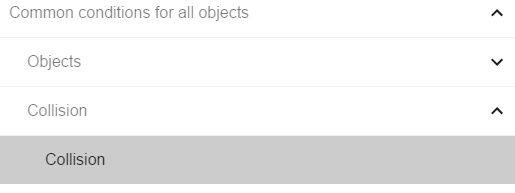 Add a new blank condition: "Common conditions for all objects", "Collision", Collision